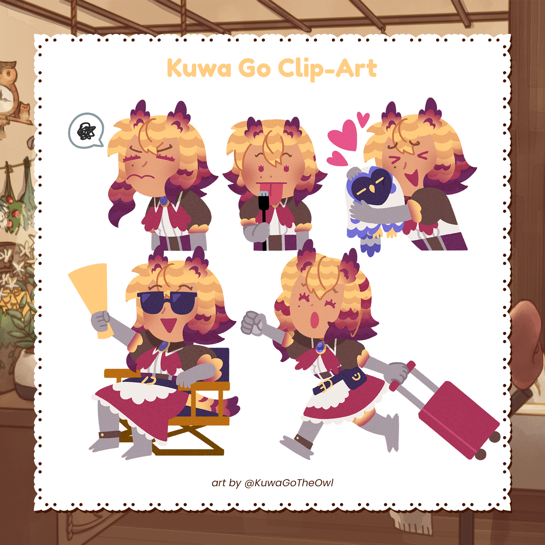 With this, please credit either the artist’s Carrd at kuwagotheowl.carrd.co, X at @kuwagotheowl or their Twitch at /kuwagotheowl wherever you’re posting the commissioned artwork online.